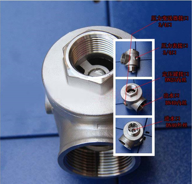 ◆選用304不銹鋼材質(zhì)◆止回閥選用精密硅膠閥體,防止泄壓◆壓力罐、壓力表、壓力傳感器接口吻合無需變通◆進出水口徑 DN25/ DN32/ DN40 /DN50