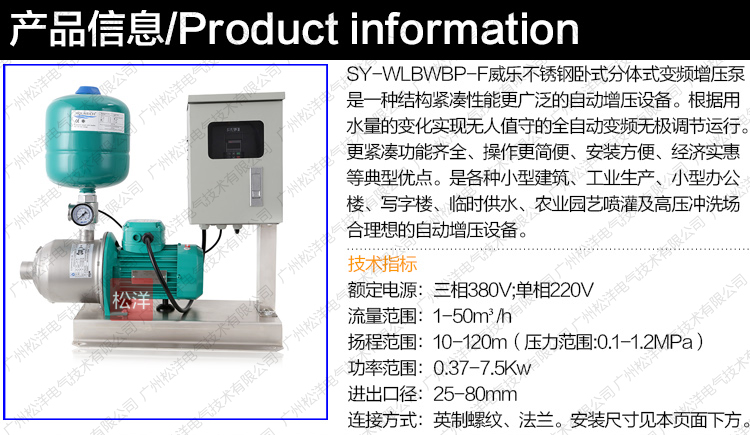 SY-WLBWBP-F威樂不銹鋼臥式分體式變頻供水設(shè)備是一種
