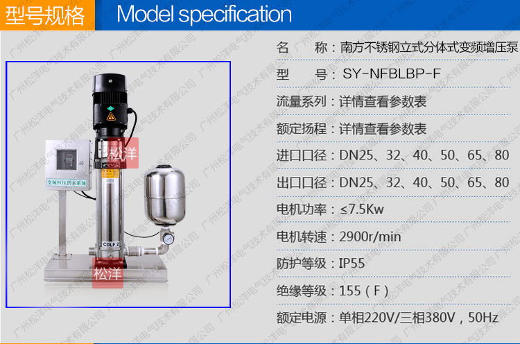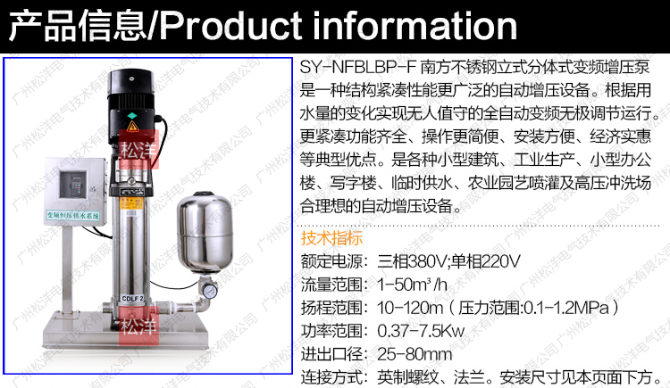 SY - NFBLBP-F南方不銹鋼立式分體式變頻增壓泵是一種